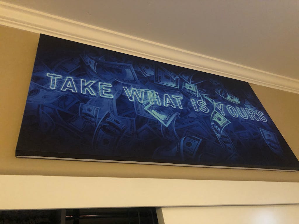 This canvas artwork looks good, however the graphic (black and blue ink) does not go high enough over the top and bottom of the frame. This results in white canvas showing up on the top and bottom of the frame which does not look good. I'll probably have to get some black paint and paint the white so that the entire frame looks dark all around. For $185+ dollars I personally think this quality is unacceptable, and I don't think the employees who printed and assembled this piece should have let it be shipped without being fixed. Thankfully it will be a pretty easy fix to make it look how its supposed to.